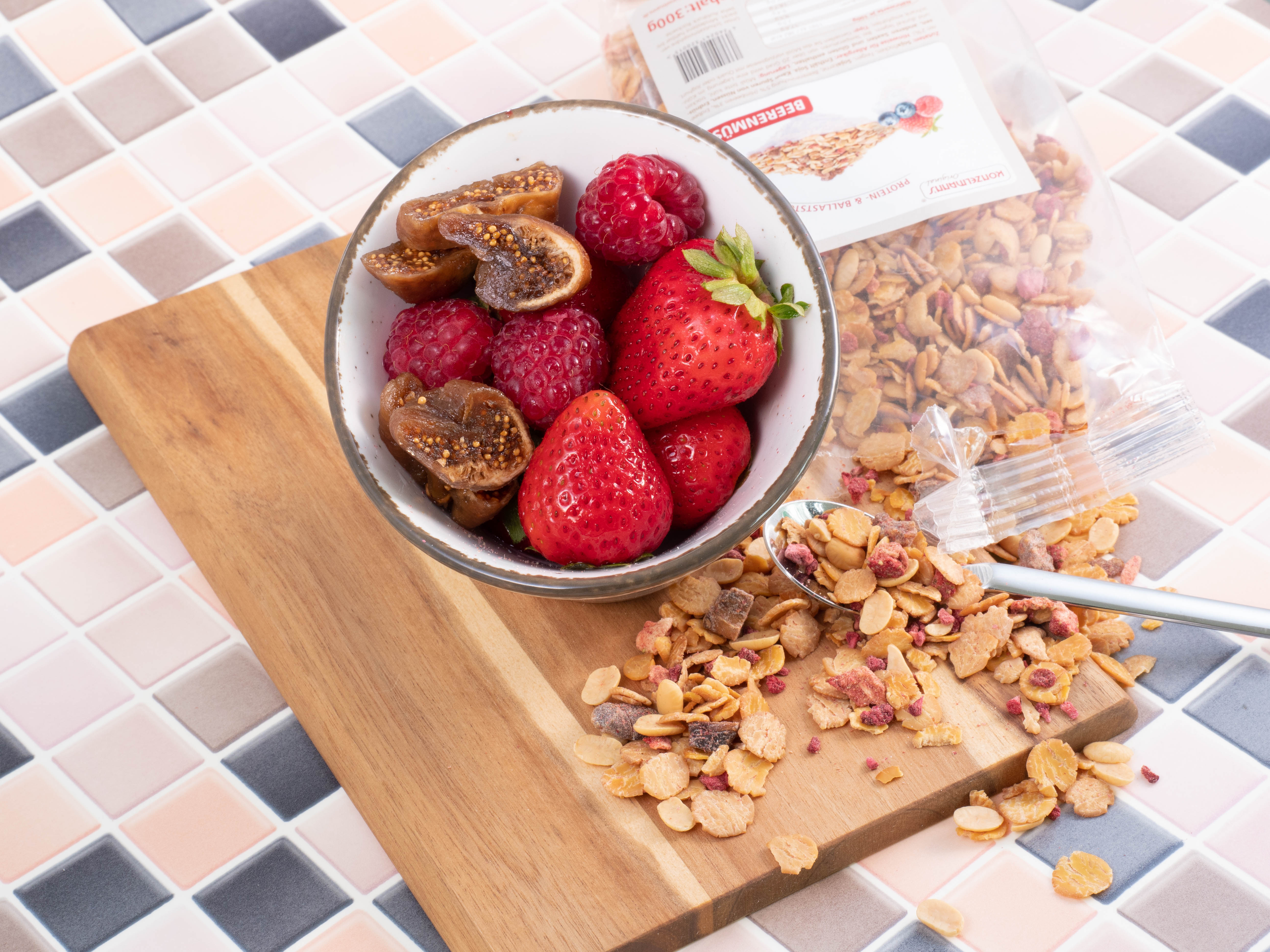 Möchten Sie Ihrem Müsli noch eine besonders fruchtige Note geben, empfehlen wir Ihnen Früchte mit niedrigem Kohlenhydrat-Anteil hinzuzufügen. Hierfür eignen sich zum Beispiel Brombeeren, Himbeeren und Johannisbeeren