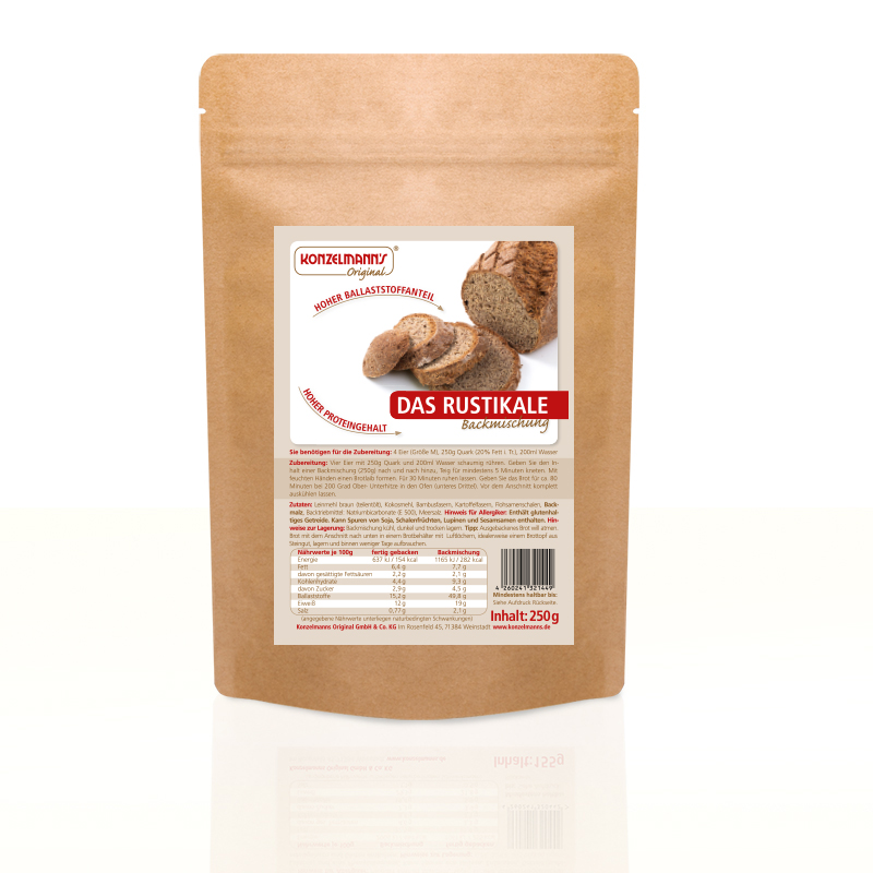 So kommt das Rustikale, die jüngste Brot-Backmischung aus dem Hause Konzelmann, daher. Es ist der perfekte Begleiter für die tägliche Brotzeit. Die resche Kruste, das saftige Innere und auch die Nährwerte überzeugen auf voller Länge. Mit dem hohen Anteil an Protein und Ballaststoffen ist das Rustikale ein wahrer Sattmacher und das ohne leere Kalorien.