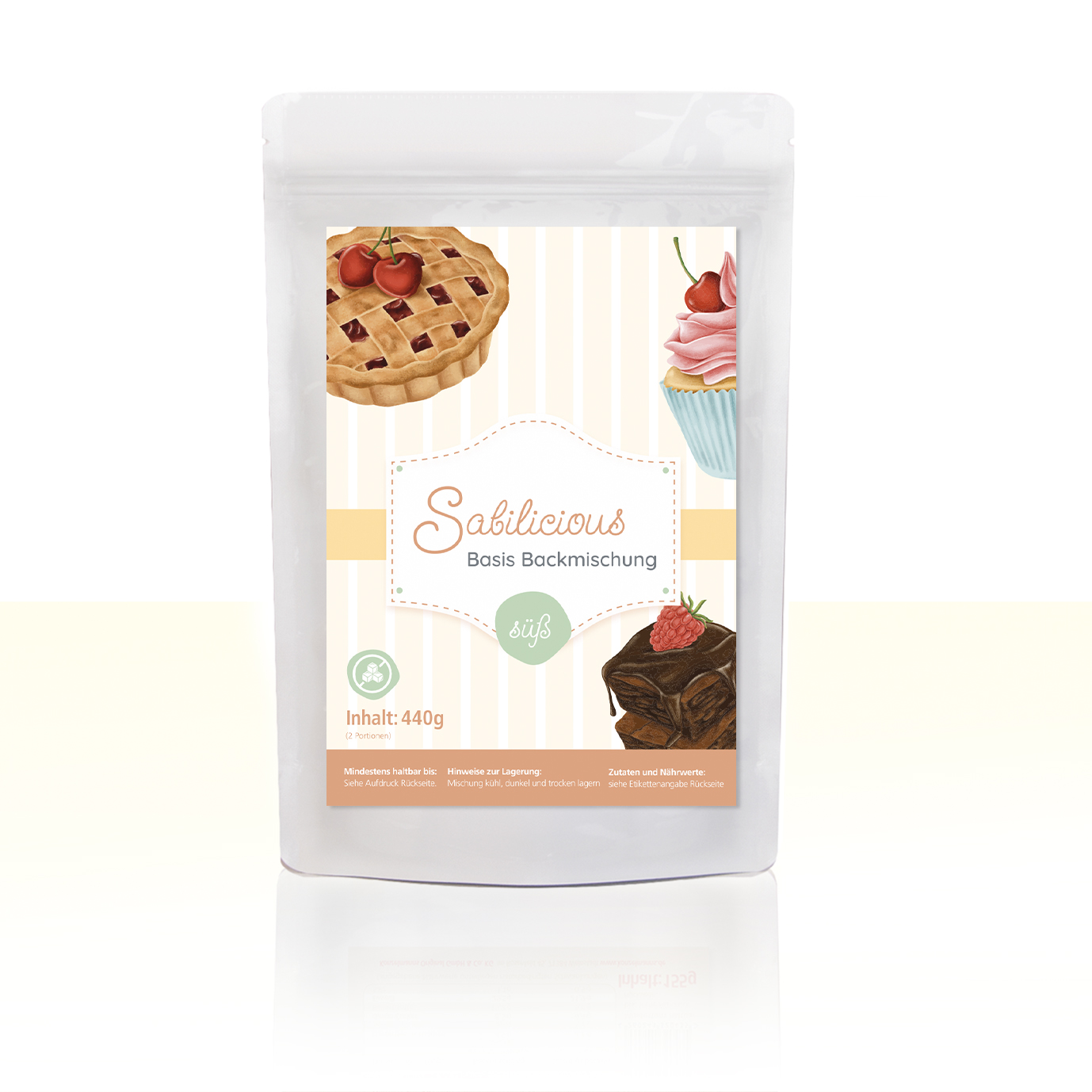 - Jede Packung enthält 440g der Sabilicious Basis Backmischung süß, was etwa 2 Portionen entspricht
