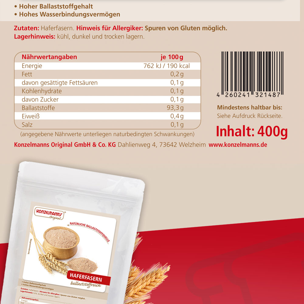 Produktinformationen "Konzelmanns Haferfasern Ballaststoffpulver 400g"